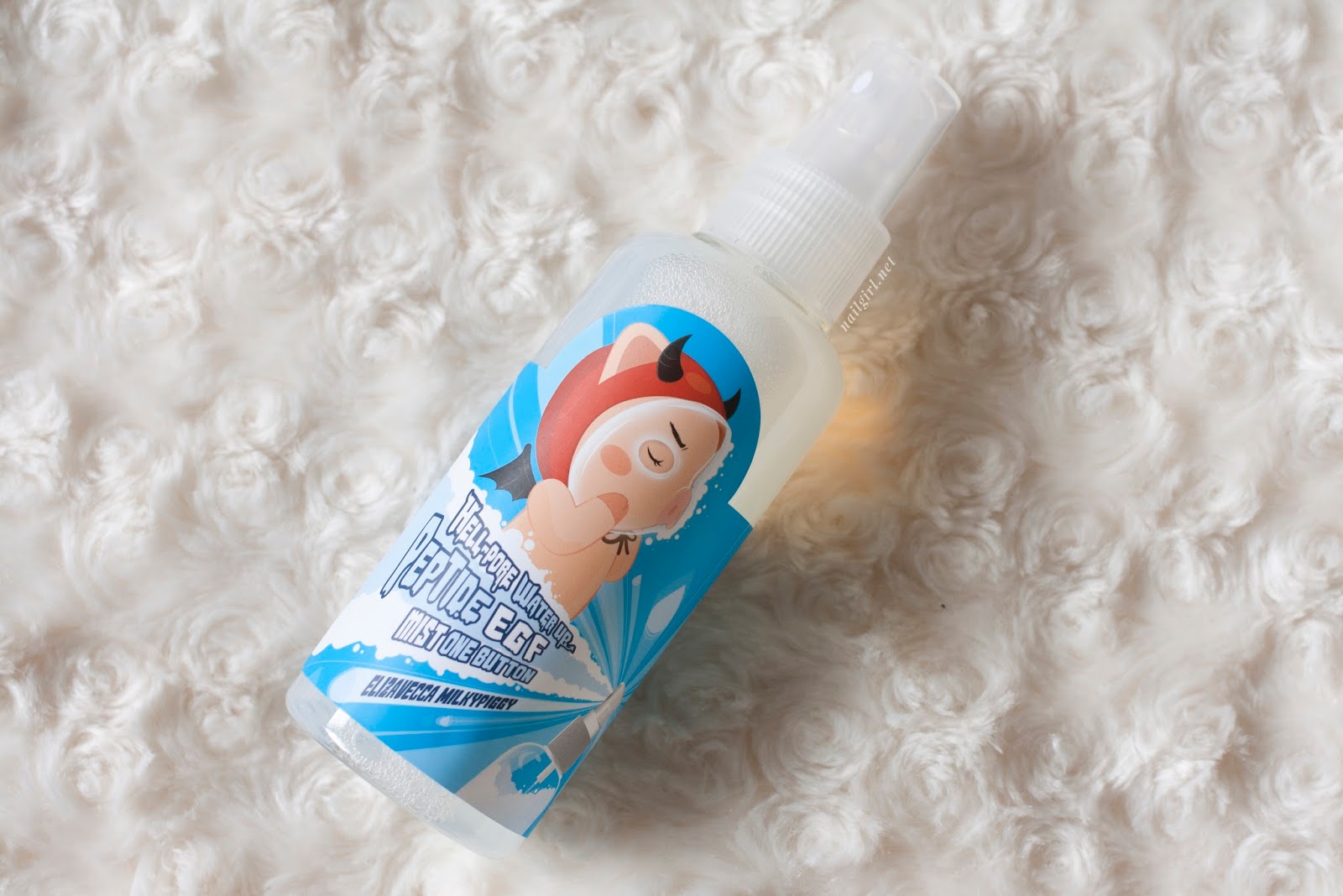 I would say that this is more like an essence in spray form rather than a toner – when I pat it into my skin after spraying (as per instructions) you can definitely feel a bit of slip as it soaks into the skin. This is probably due to the jojoba oil and phytosqualane in the formula. These two also add a definite sheen to the skin, so I imagine this would work well as a dewy-finish setting spray for those with drier skin! I do see a few recommendations on the Elizavecca website to use this both before and after applying makeup for a dewy finish… Not that I need it with my *naturally dewy* (oily af) skin!