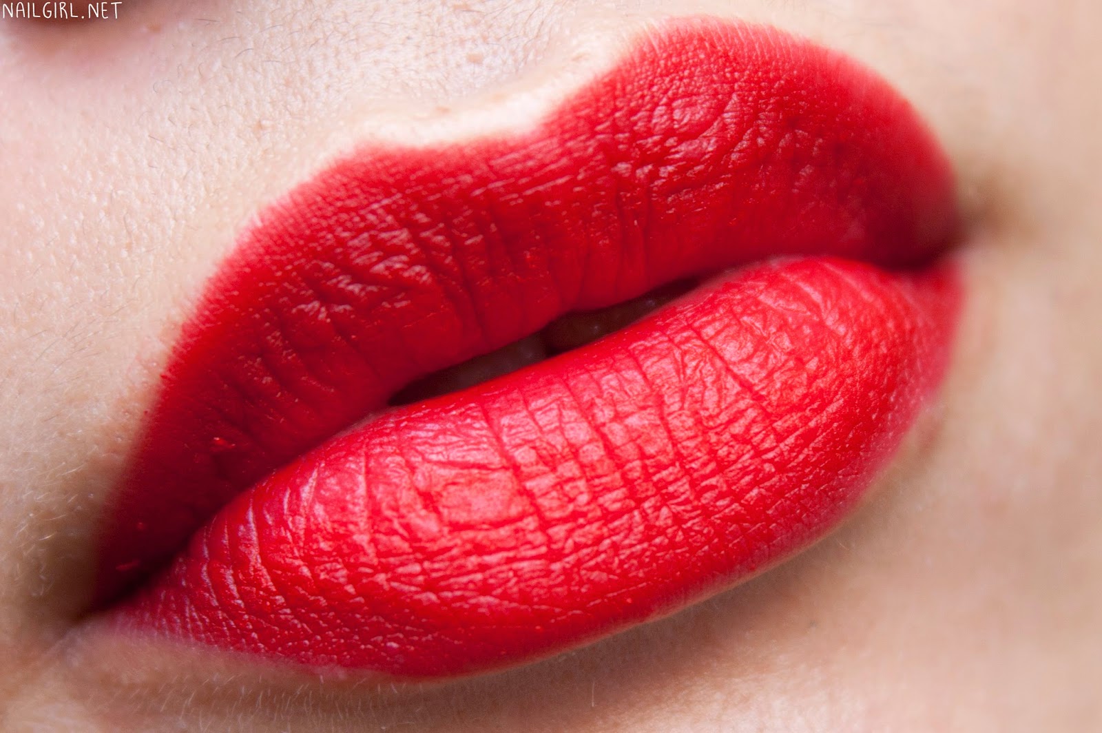 With the Ruby Woo lipstick over lipliner. It’s very matte, but I didn’t have any problems with it being uncomfortable. You can see a few flakes on my lips, so exfoliation is essential in addition to having well-moisturized lips before using these products.