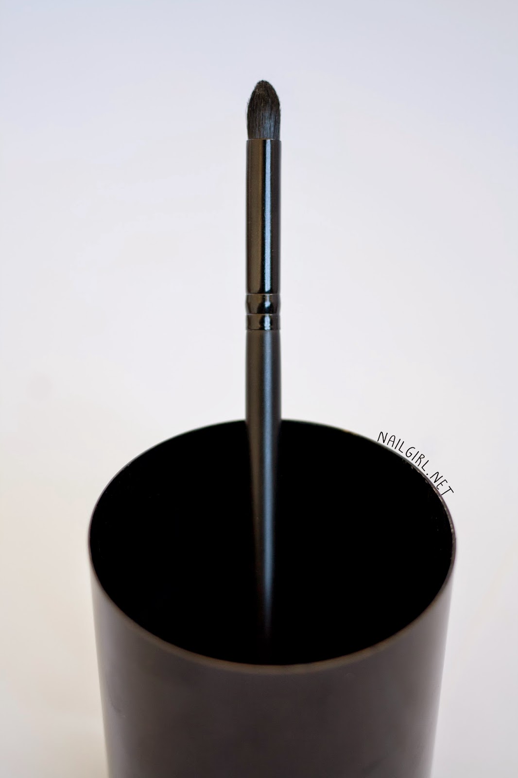 This brush reminds me quite a lot of the MAC 239 – both are flat, rounded brushes designed for packing colour onto the lid. It’s soft, yet firm in exactly the right way. It’s the same width as the 239, but slightly shorter and slightly less firm. $15
